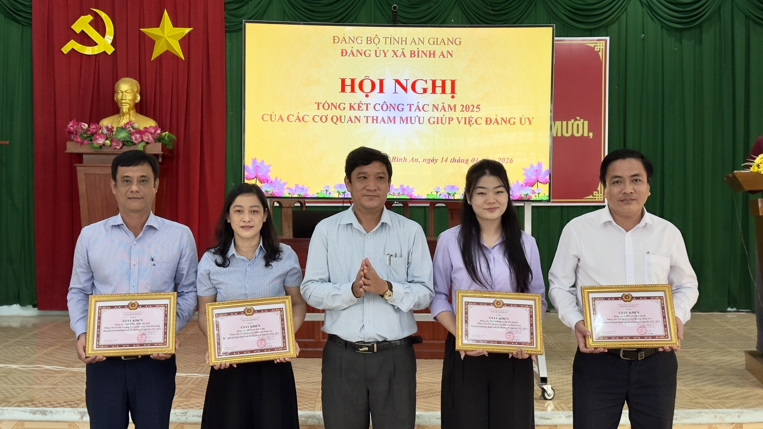 Sáng ngày 14/01/2026, Đảng ủy xã Bình An tổ chức hội nghị tổng kết công tác năm 2025 của các cơ quan tham mưu, giúp việc Đảng ủy và phương hướng, nhiệm vụ công tác năm 2026.