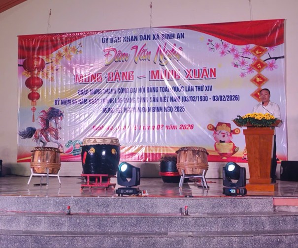 Tối 09/02, (nhằm ngày 22 tháng Chạp năm Ất Tỵ), UBND xã Bình An tổ chức Chương trình văn nghệ “Mừng Đảng - Mừng Xuân Bính Ngọ 2026” với chủ đề: “Mừng Đảng - Mừng Xuân, mừng đất nước đổi mới”.